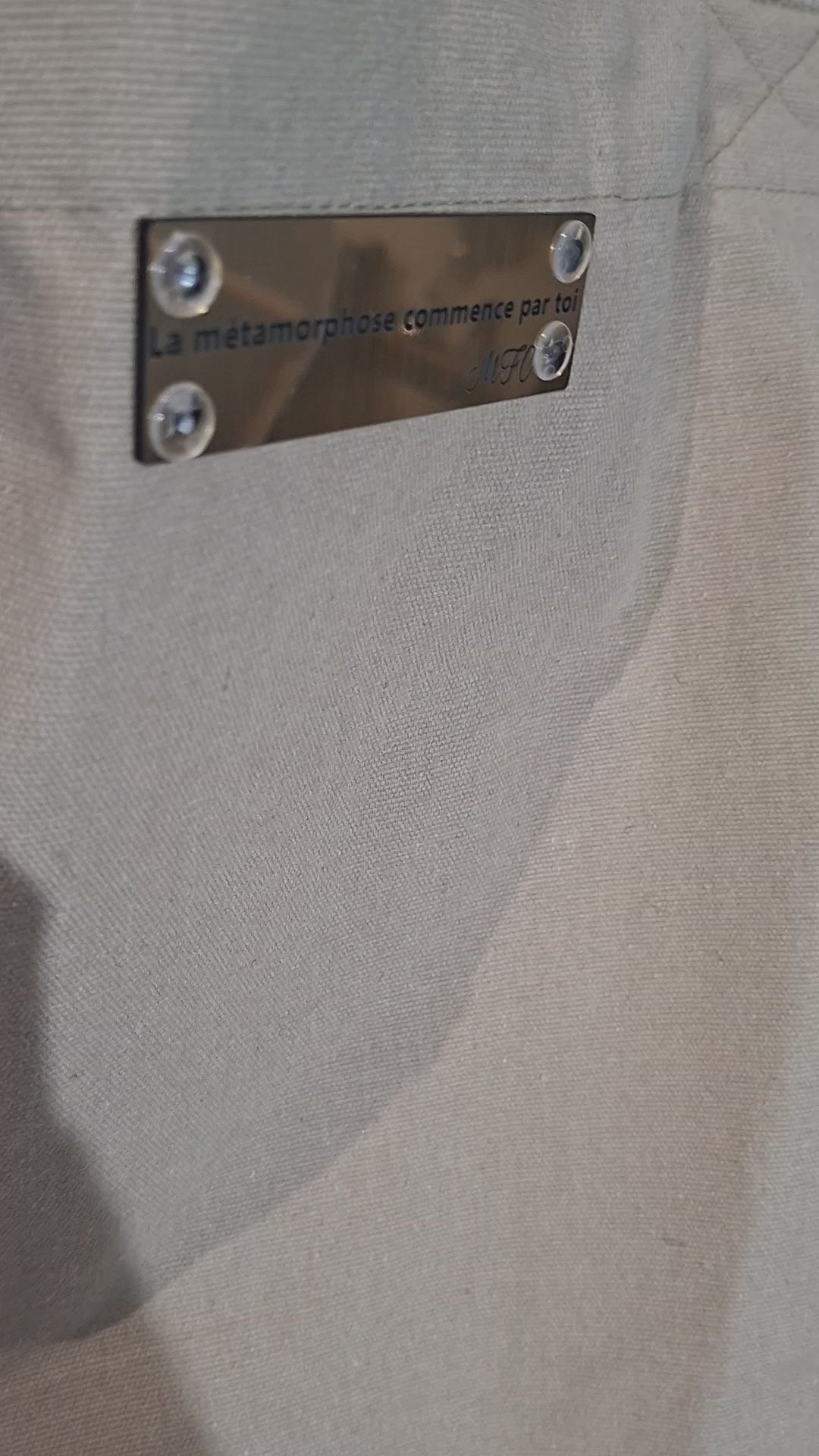 Branding rond acrylique logo Mademoiselle F Création Branding rectangulaire acrylique slogan La métamorphose commence par toi, MFC